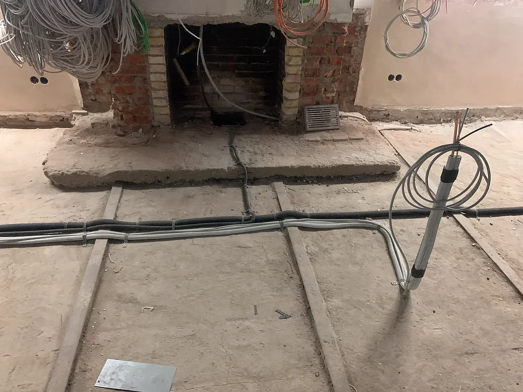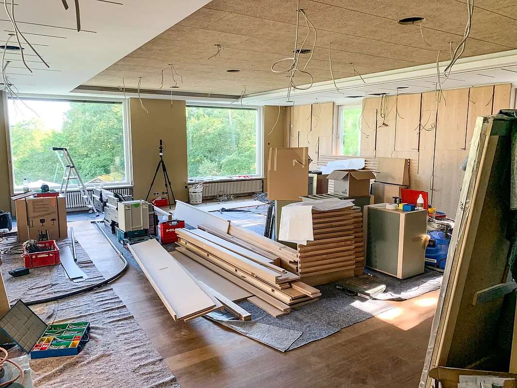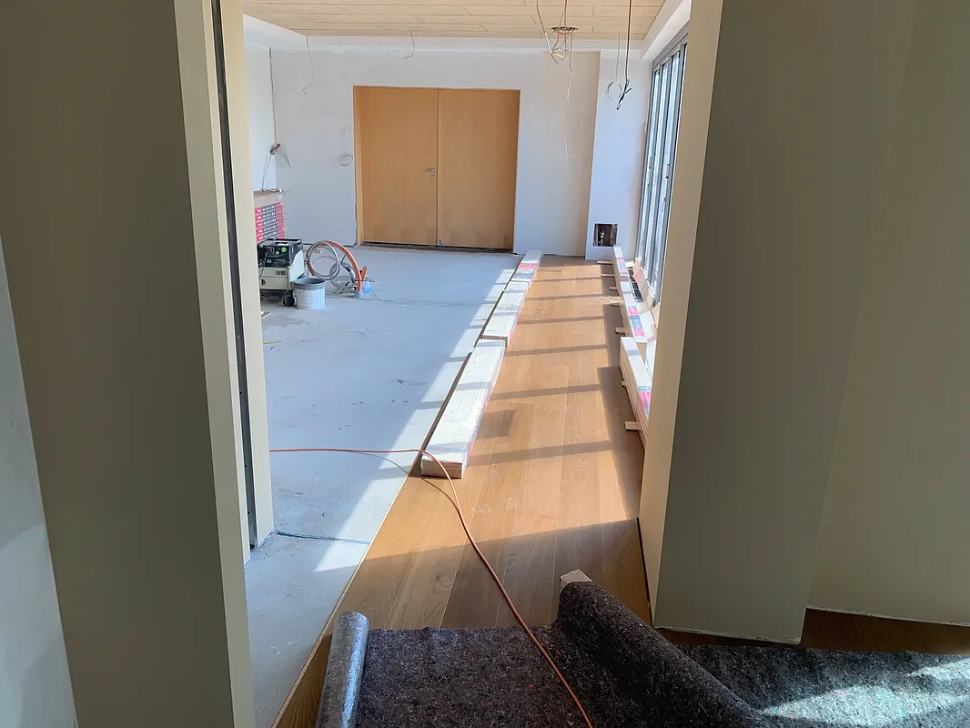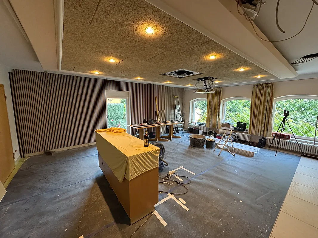 - Abtragen des alten Bodenbelags und Estrich im vormaligen Kaminzimmer