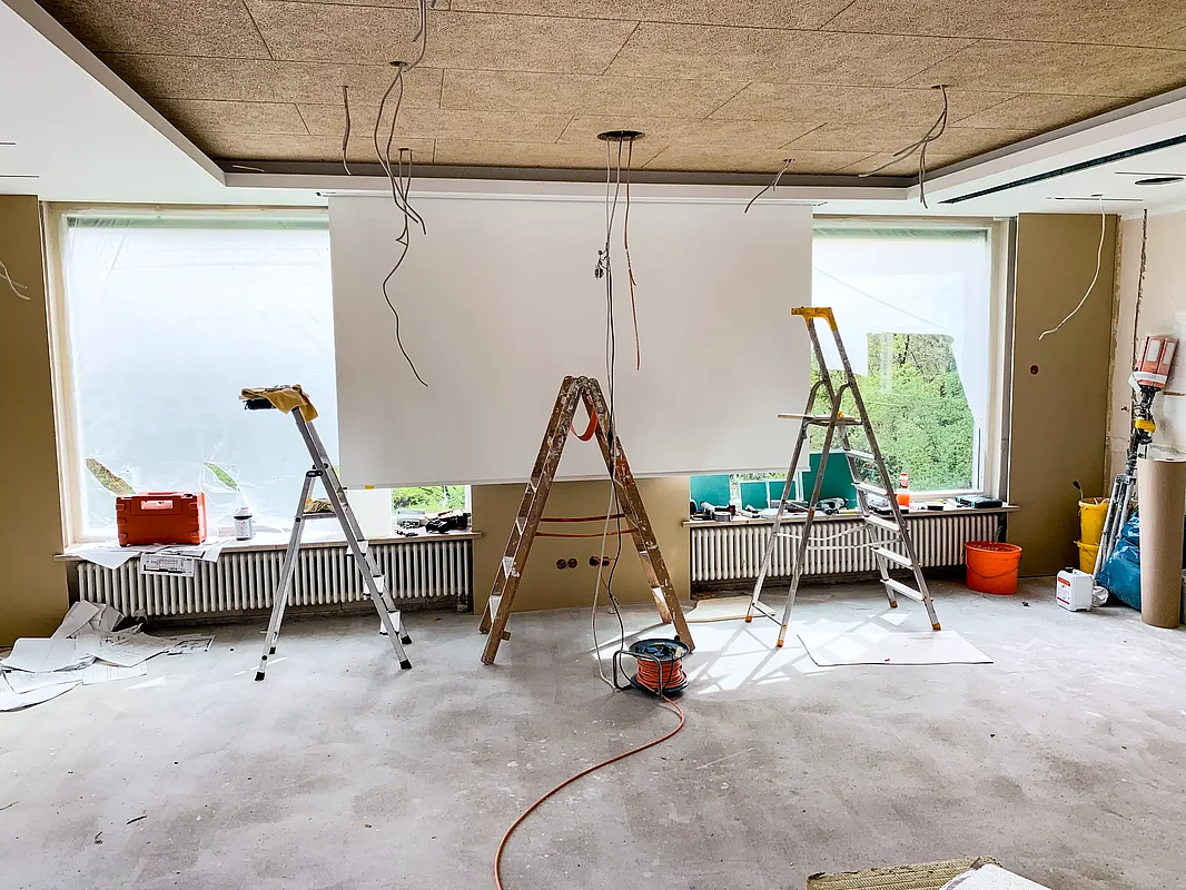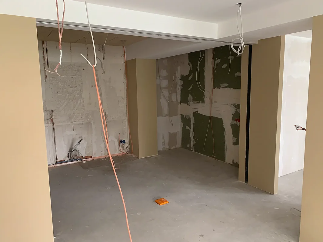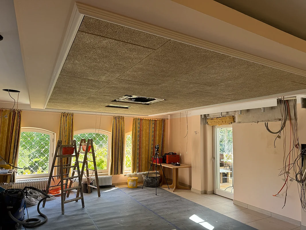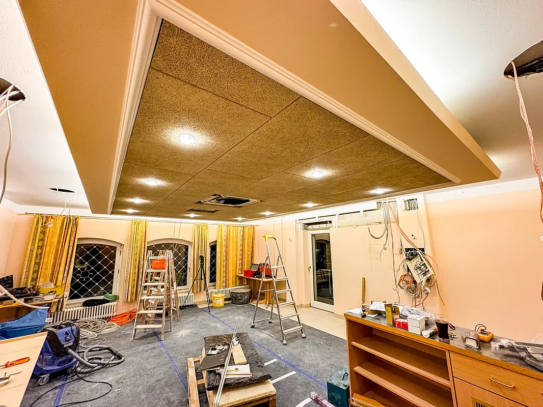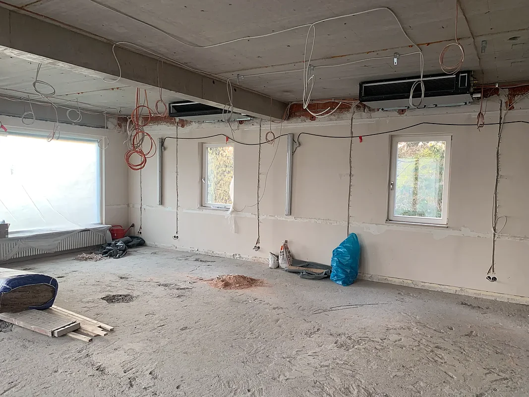 - Abtragen des alten Bodenbelags und Estrich im vormaligen Kaminzimmer