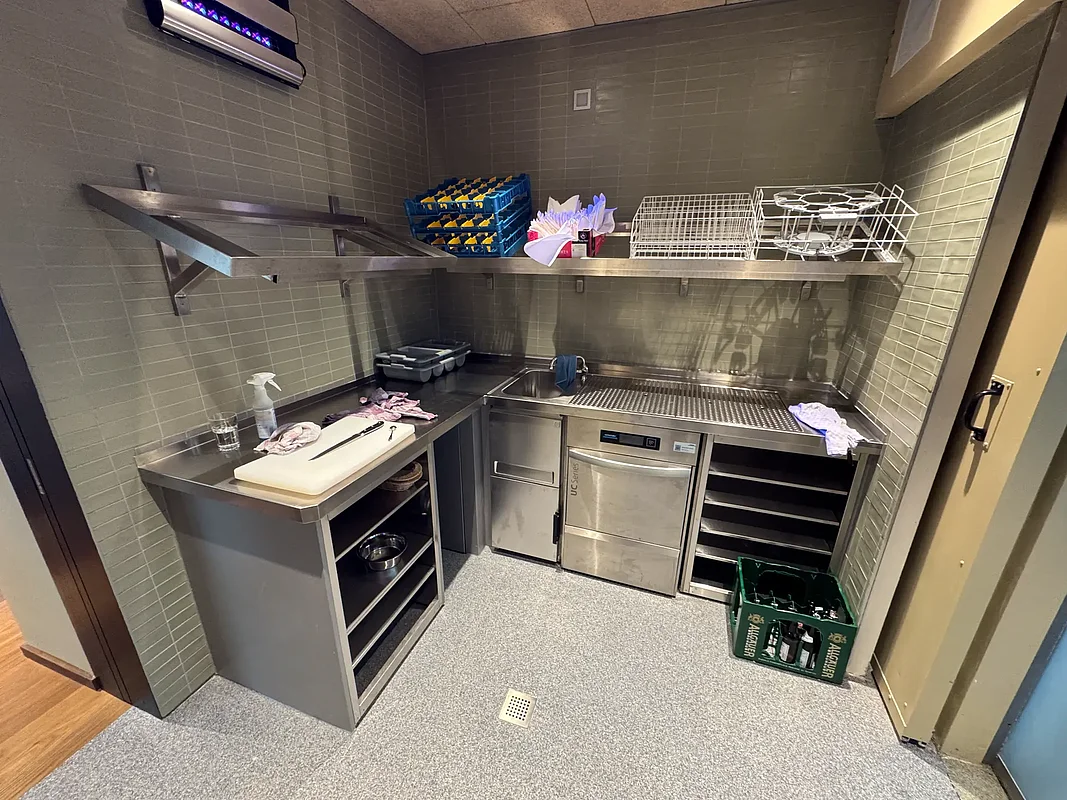 - Hygienischer Kunstharzboden im Back-Office/Spüleküche und im Barbereich