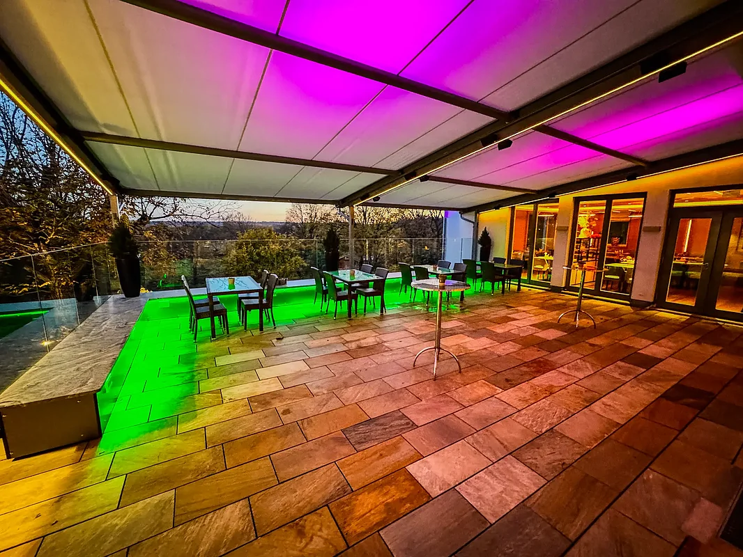 - Bau und Montage der LED-Leisten im Restaurant, in der Hotelbar und auf der Terrasse