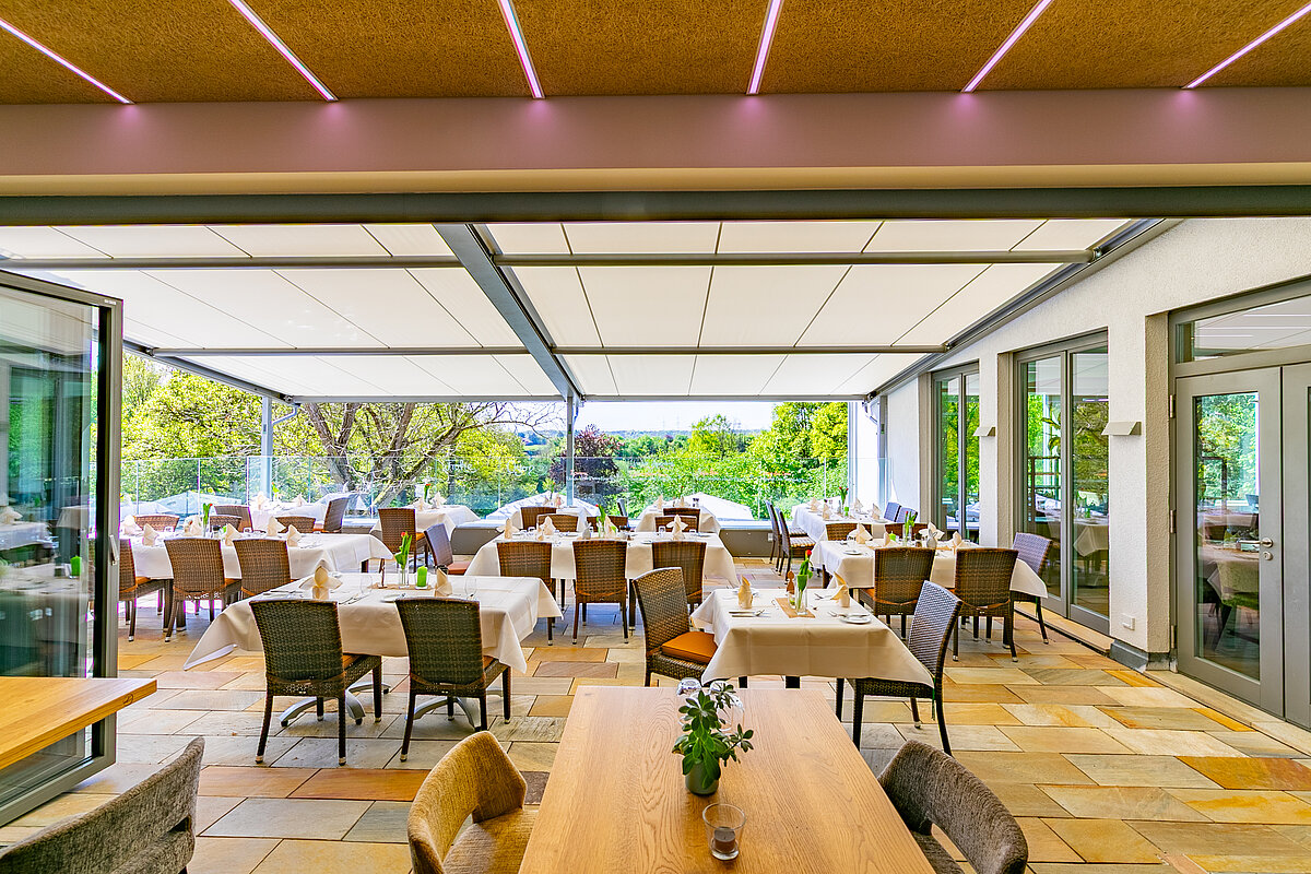 Unsere ca. 70 m² große Terrasse zählt zu den schönsten Plätzen im Hotel und Restaurant Birkenhof.